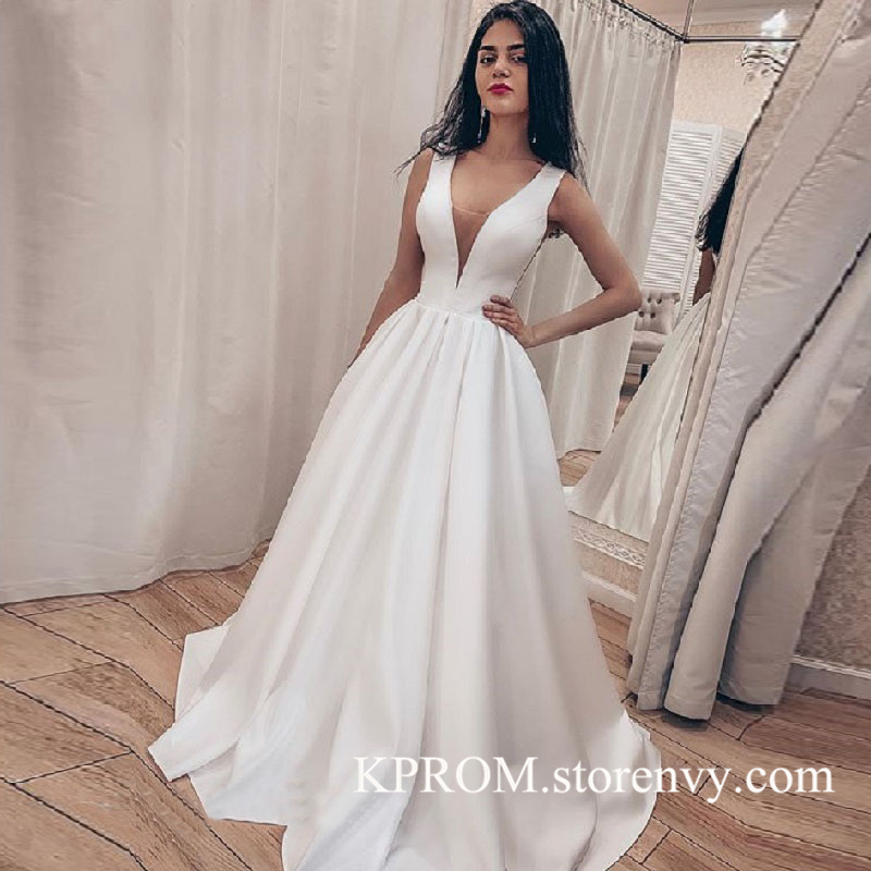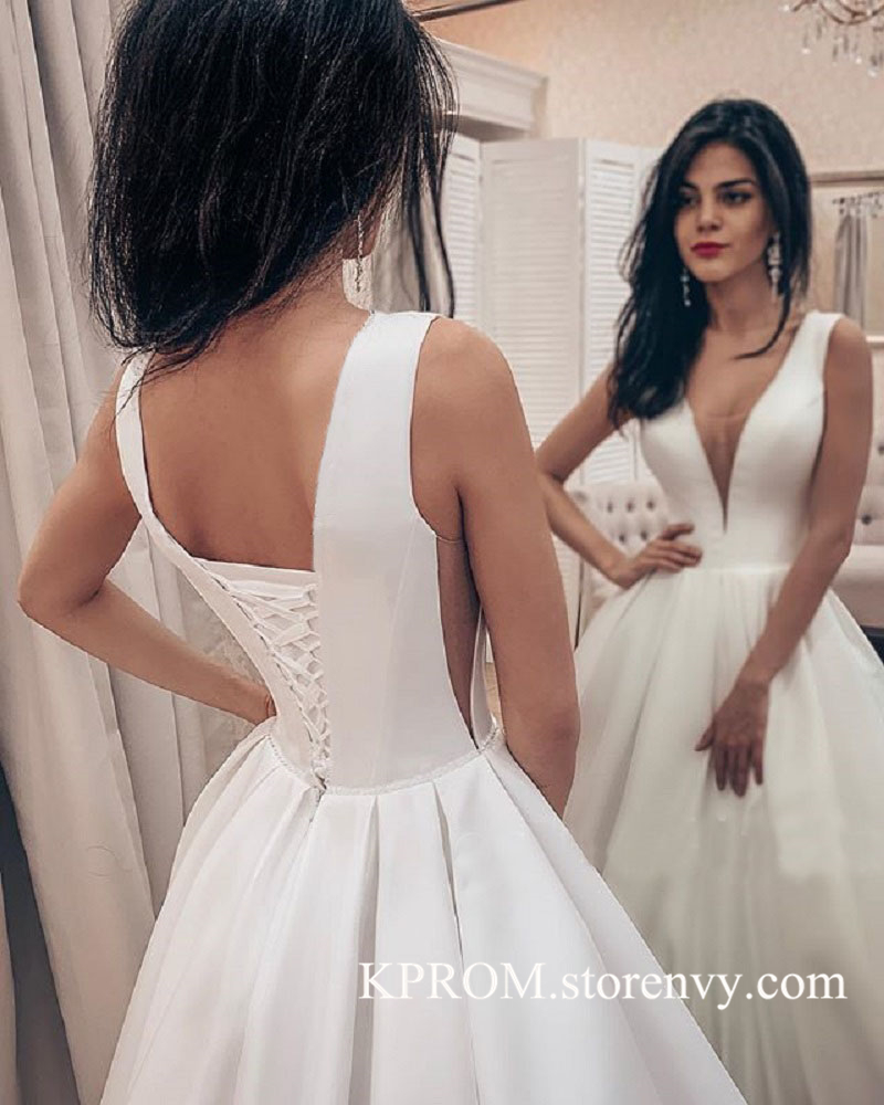 Long Wedding Dress, Satin Wedding Dresses, A-Line Bridal Dress, Corset Bride Dress, Backless Wedding Dress, Sleeveless Wedding Dress