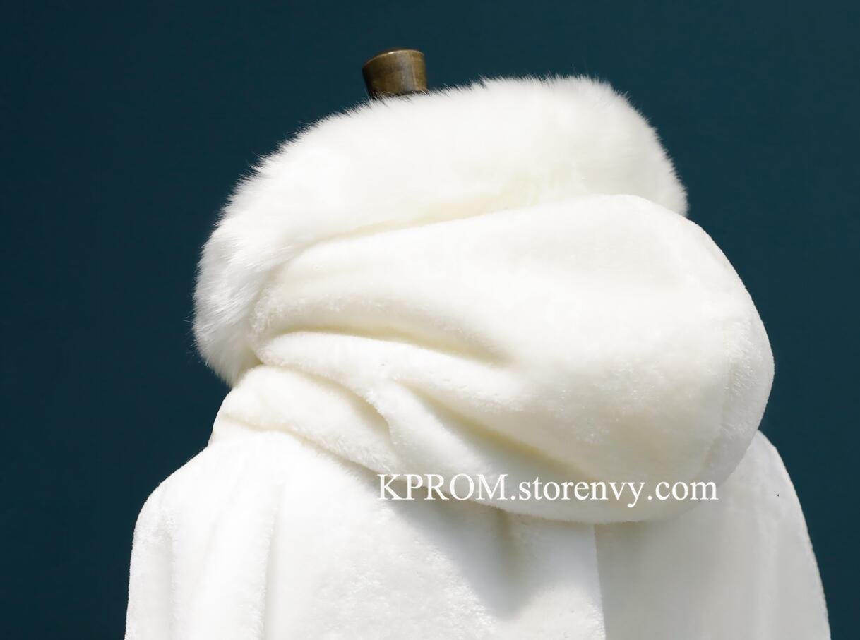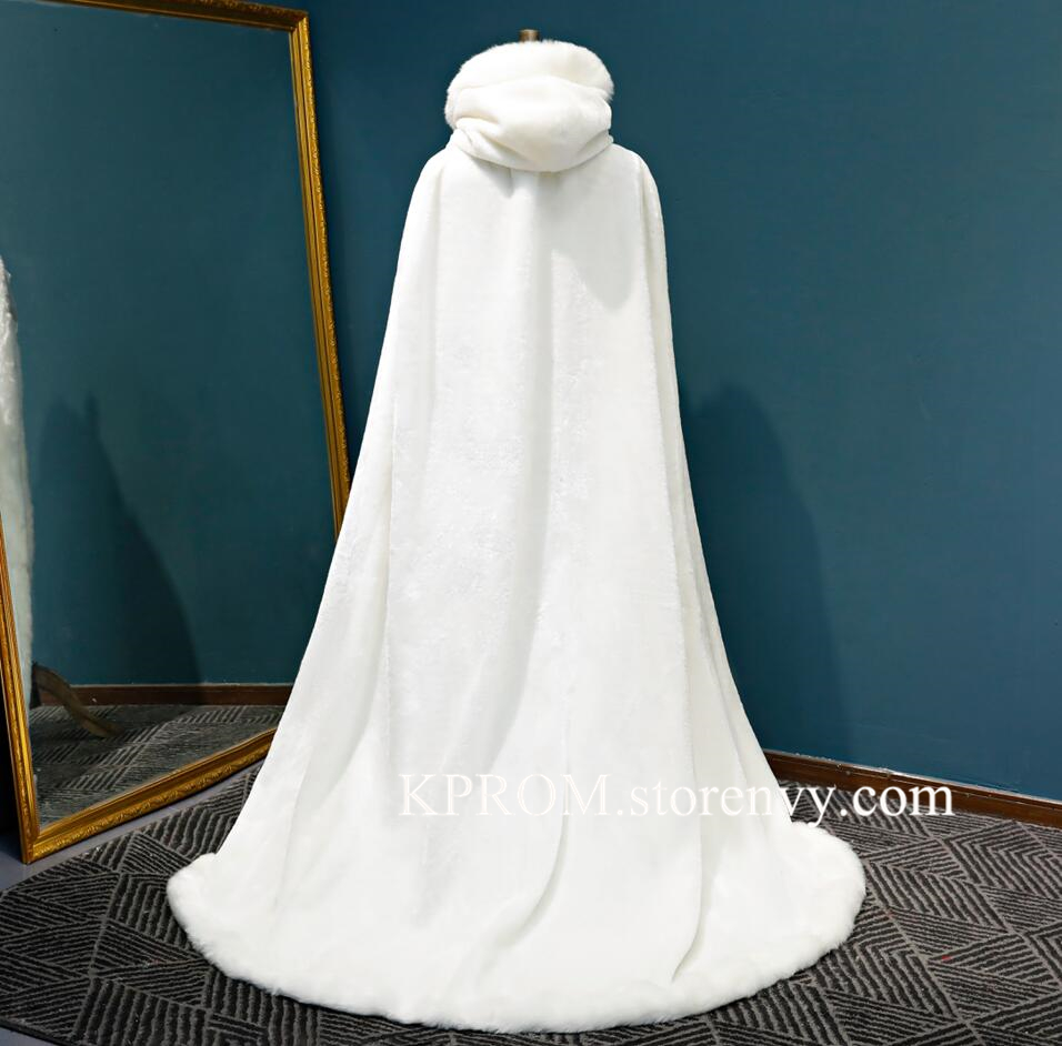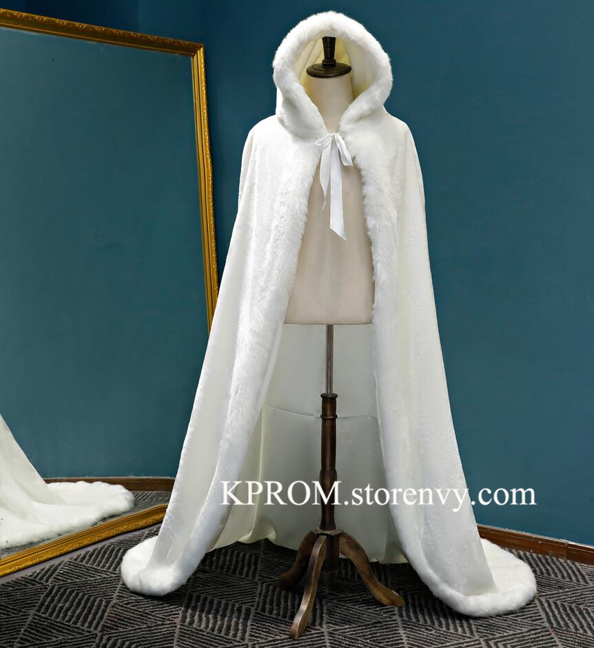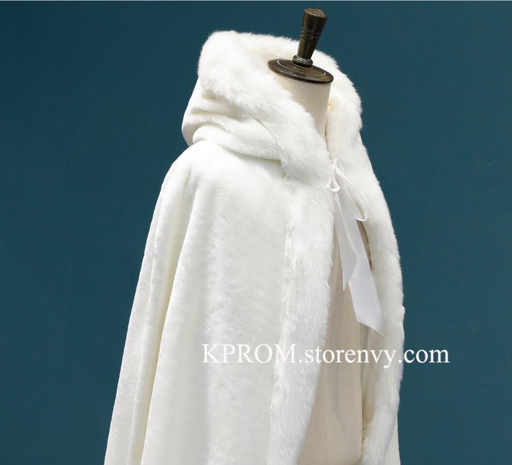 Warm Faux Fur Trim Winter Bridal Cape Wedding Cloaks Hooded Long Party Wraps Jacket White/Ivory Wrap for Wedding Dress Evening