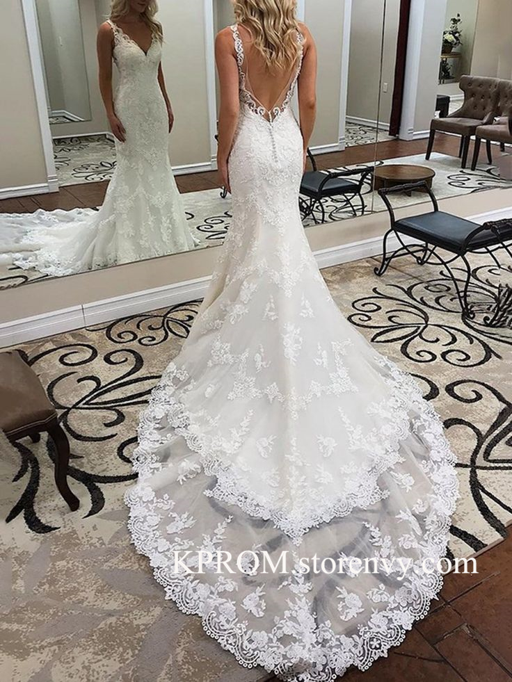 Mermaid Floor-Length Sleeveless Lace Church Wedding Dresses