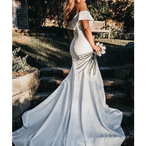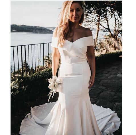 Elegant Satin Mermaid Wedding Dresses Off The Shoulder Court Train Bride Gown