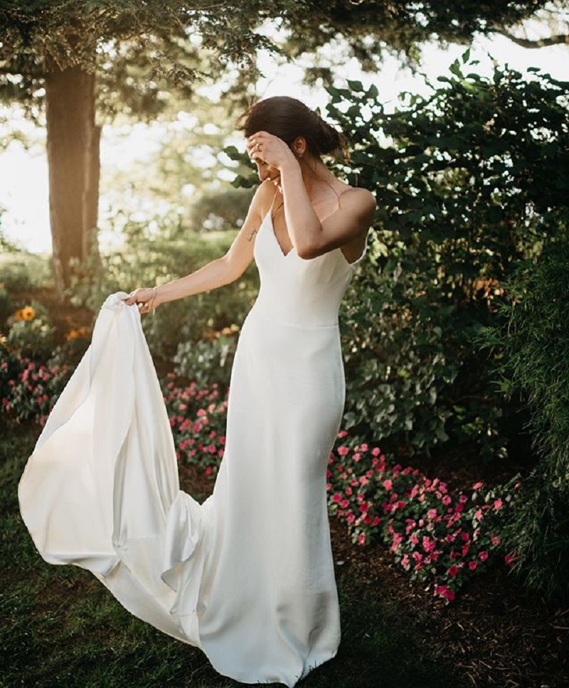 New Long Beach Wedding Dresses,Spaghetti straps Open Back Boho Wedding Dress with Train Cheap