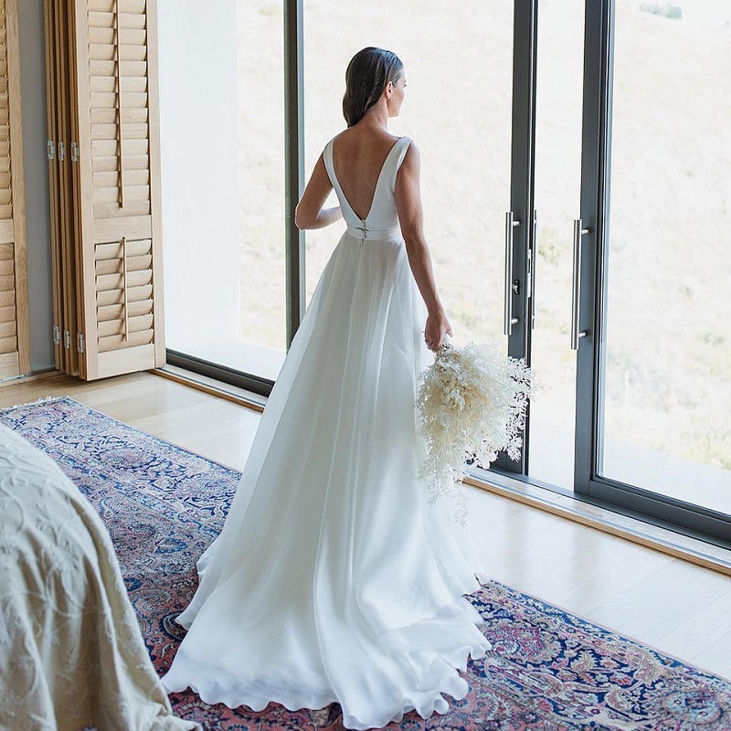 Simple Backless Sexy Cheap a line Wedding Dresses Online,Custom Organza Bridal Dresses