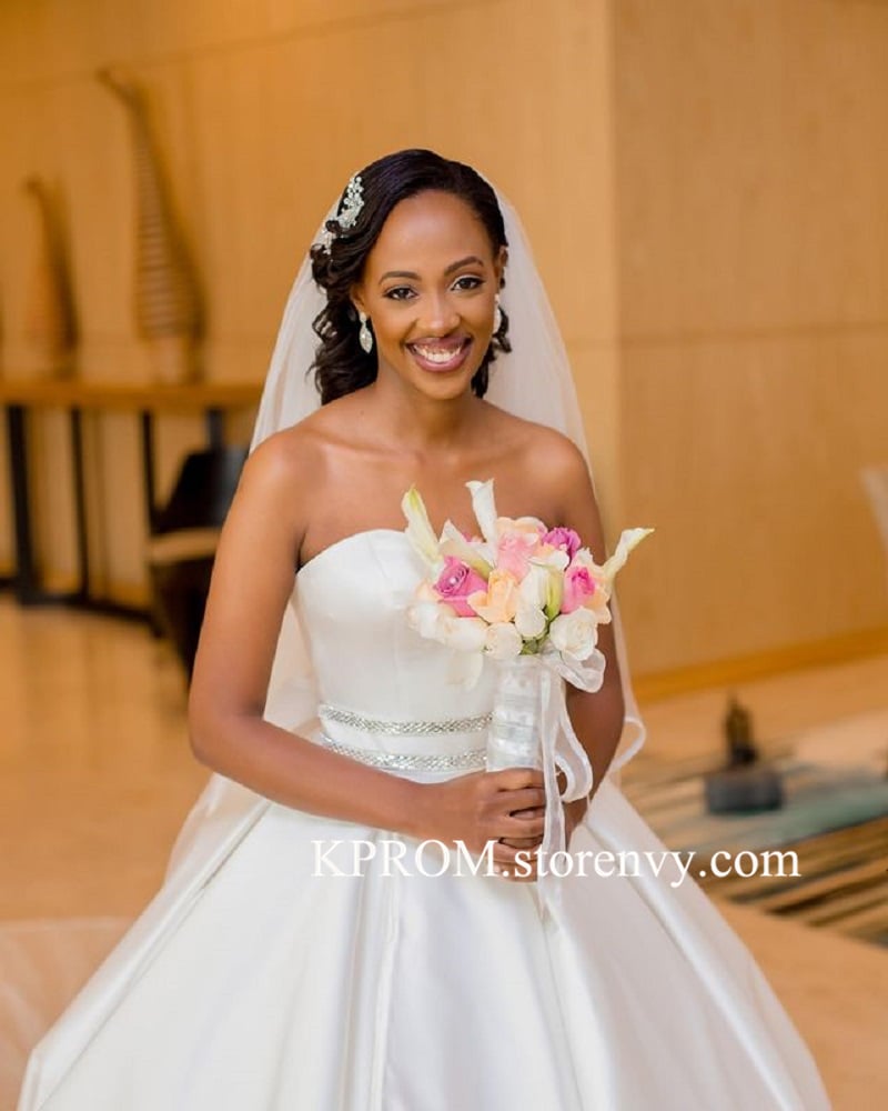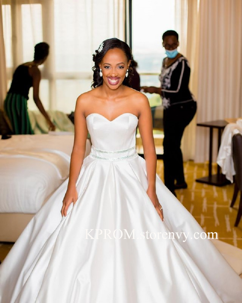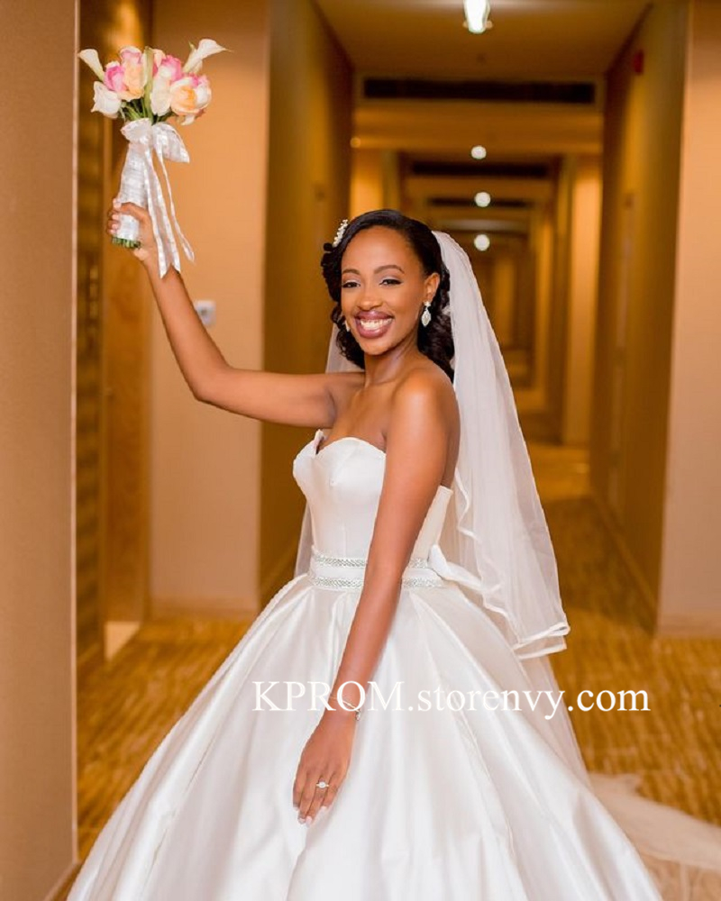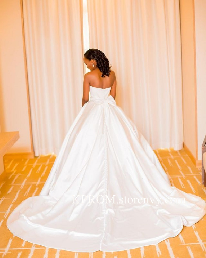 Cheap Vintage Long Satin Wedding Dresses,White Ball Gown Court Train Women Bride Dresses