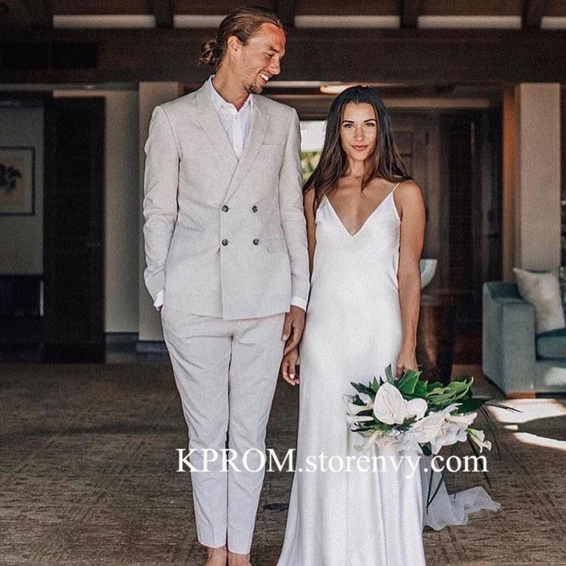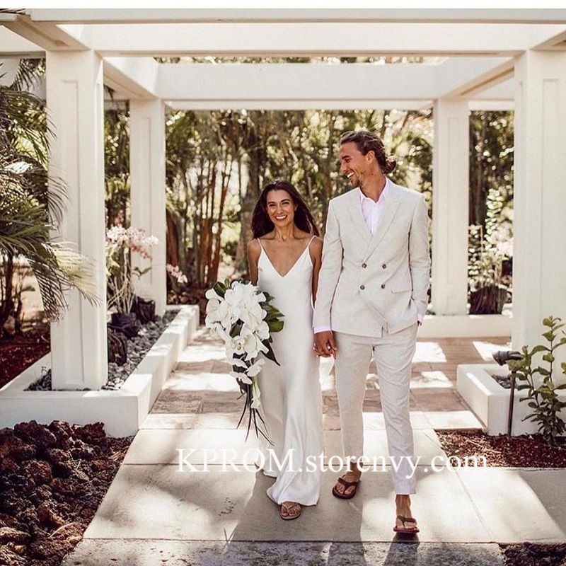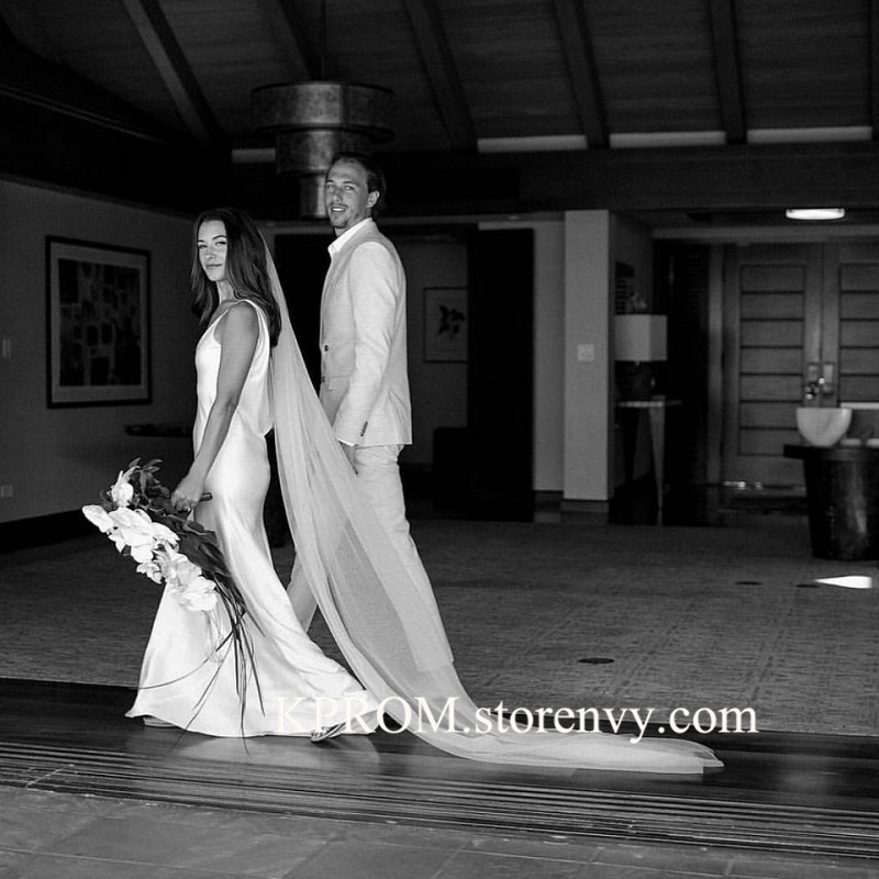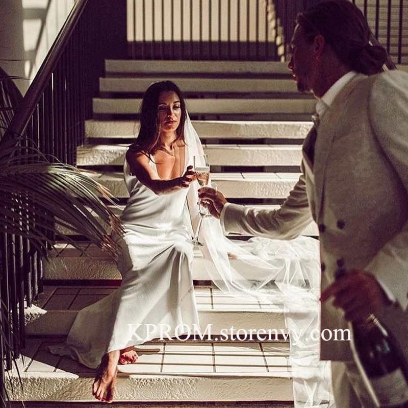Sexy Beach Stretch Satin Wedding Dress Spaghetti Straps Long Back Open Women Cheap Wedding Gown