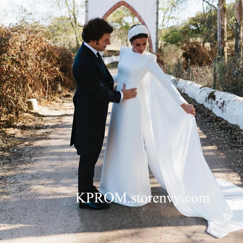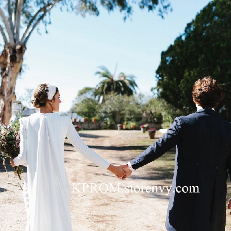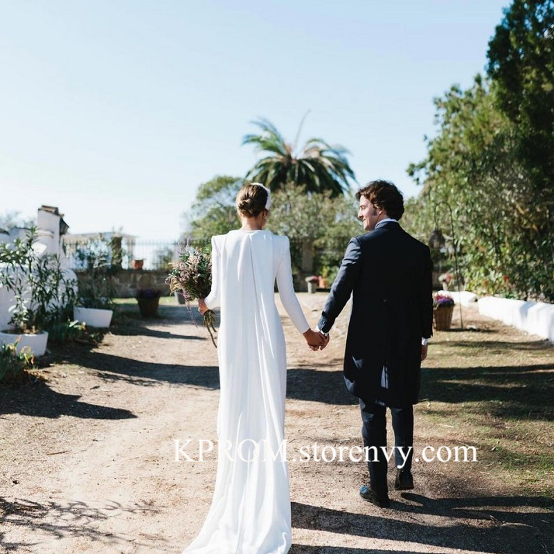 Boho Long Sleeve Wedding Dresses Mermad Open Back Bridal Dress with Cape