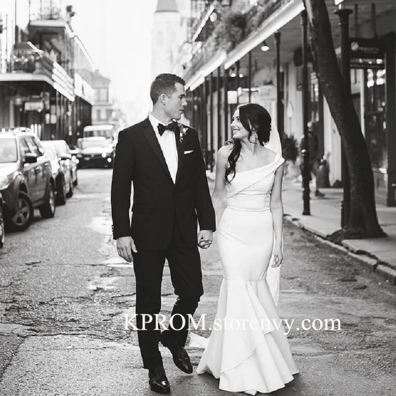 Vintage Long Mermaid Wedding Dresses One Shoulder Satin Wedding Gown with Ruffles