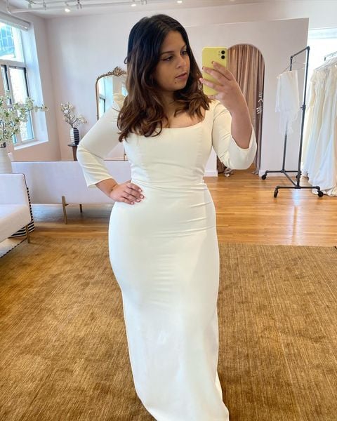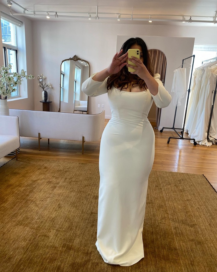 Elegant Long Sleeve Wedding Dress,Mermaid Plus Size Satin Bridal Gowns Custom