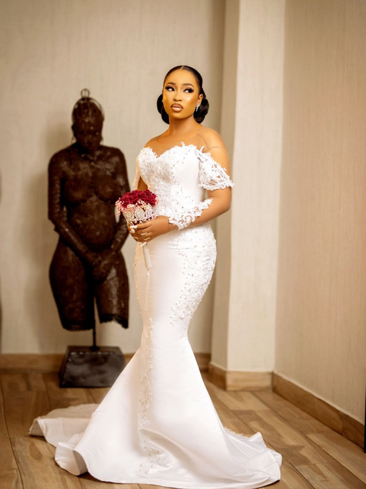 Mermaid Wedding Dresses With Sheer Neck Illusion Long Sleeves Lace Bridal Dress Plus Size
