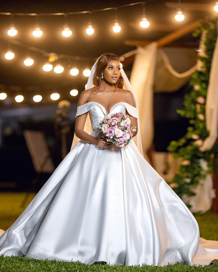 Off Shoulder White Ball Gown Satin Wedding Dresses,Women Long Bridal Gowns
