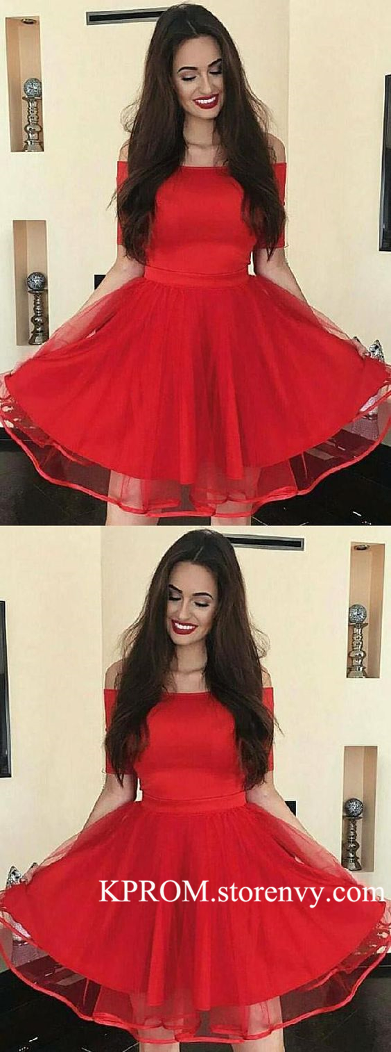 Simple A-Line Off Shoulder Short Homecoming Dress,Red A Line Cocktail Prom Gown