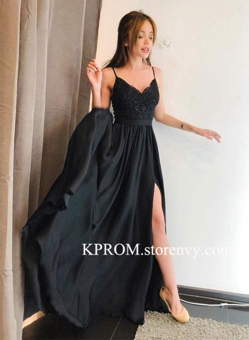 Black Lace Side Slit Evening Dress, Sexy Long Prom Dress Formal Dresses for Women
