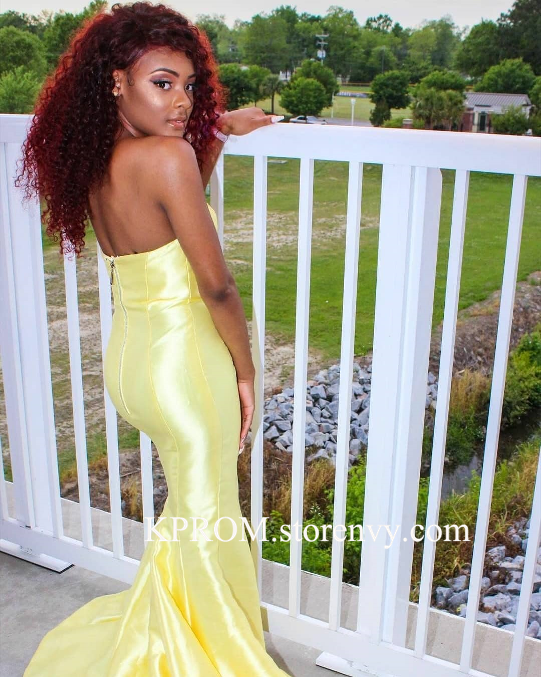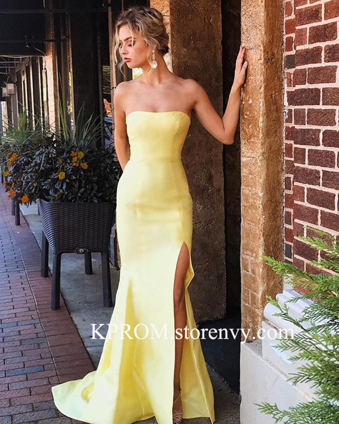 Strapless Mermaid Yellow Long Prom Dress with Slit,Women Evening Dress