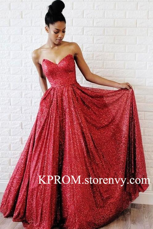 Sparkly V Neck Red Floor Length Prom Evening Dress,Long Formal Party Gown