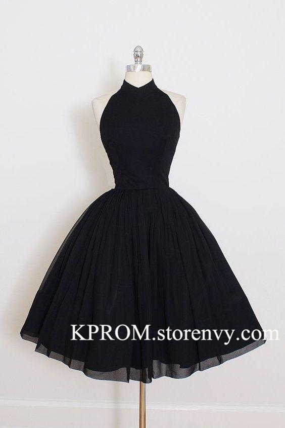 Vintage Short Cocktail Dress,Black Homecoming Party Dress,Short Ball Gown Prom Dresses,Chiffon Party Dress