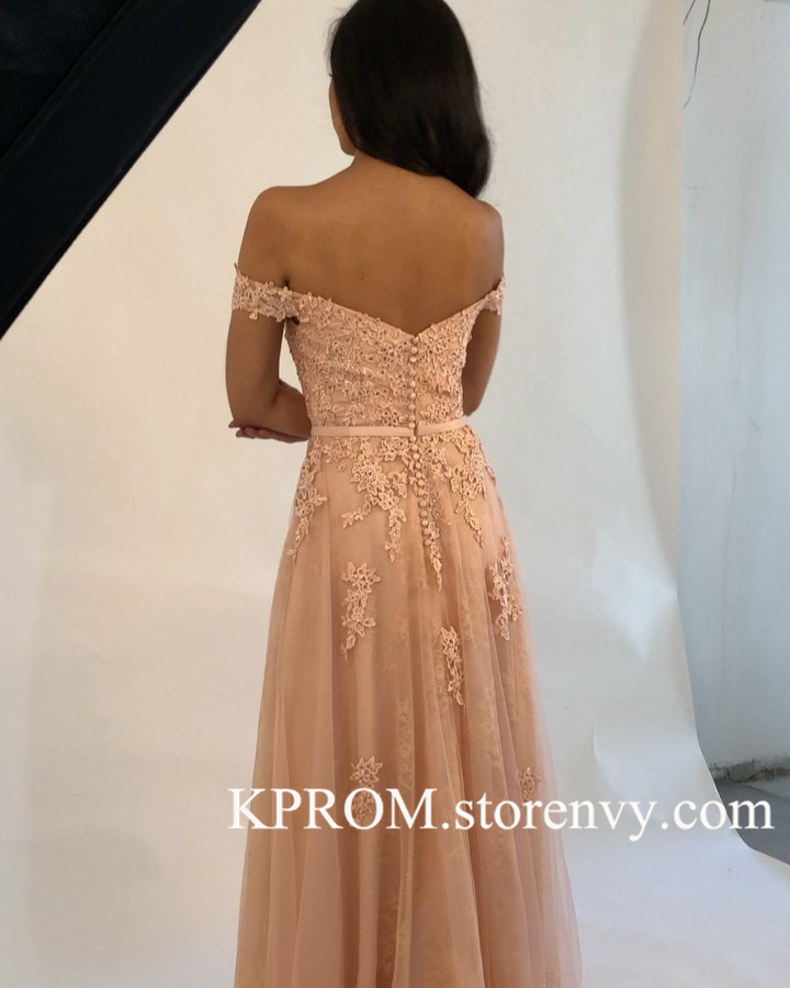 Red A-line V-neck Applique Lace Prom Dresses,Back Open Champagne Evening Gown,Party Dress with Buttons