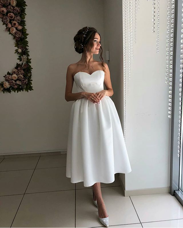 Short Tea Length White Wedding Dresses,Vintage Ivory Sweetheart Bridal Gown