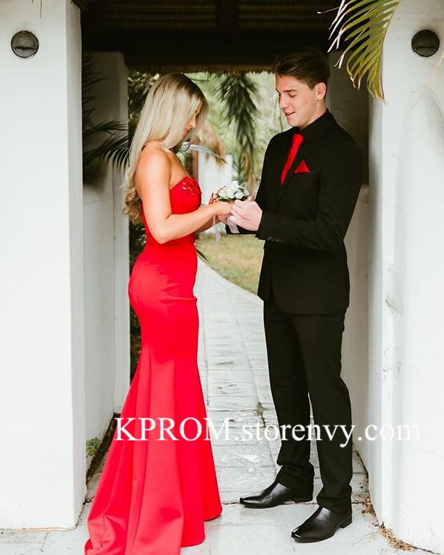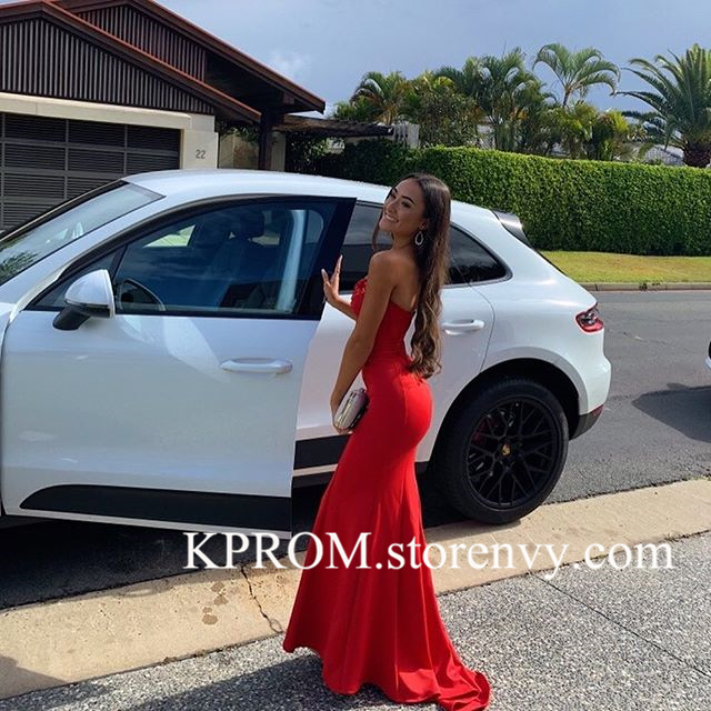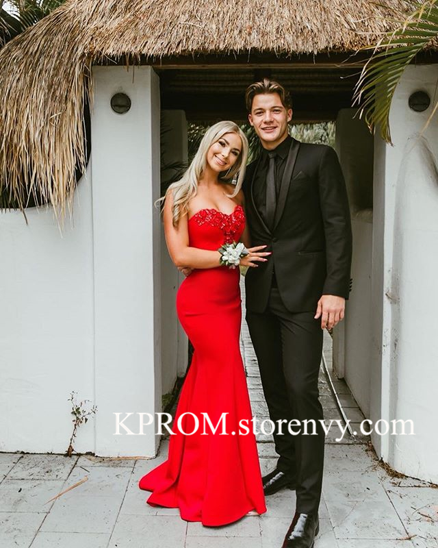 Elegant Red Prom dresses with Back Open,Long Mermaid Lace Applique plus size long formal dresses