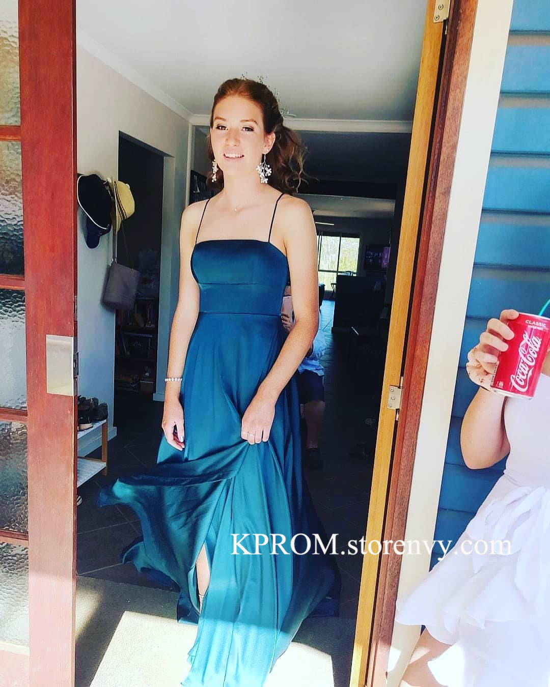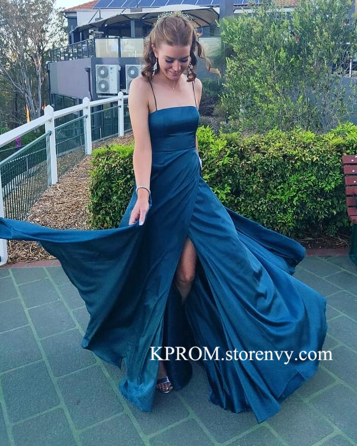 Simple Strapless satin long prom dresses,cheap a line senior prom dresses,formal junior prom dresses with split