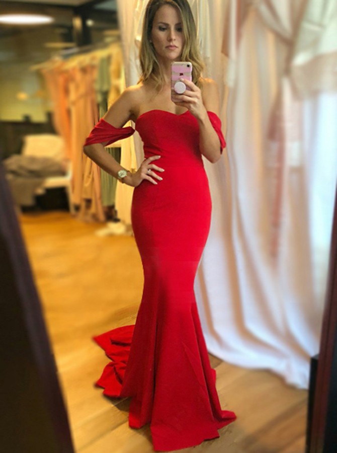 Mermaid Sweetheart Sleeveless Red Stretch Satin Prom Dress