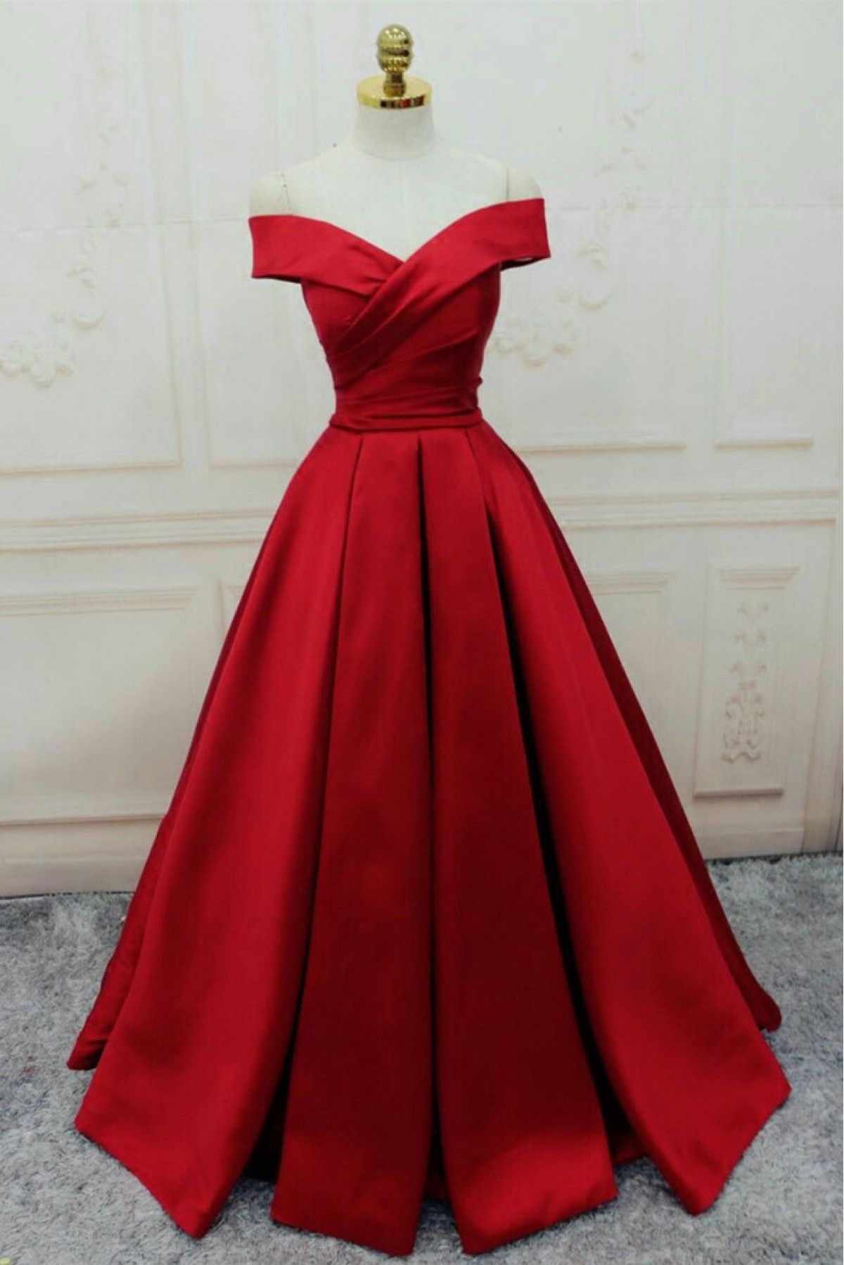 Simple Red Off Shoulder A line Long Cheap Evening Prom Dresses