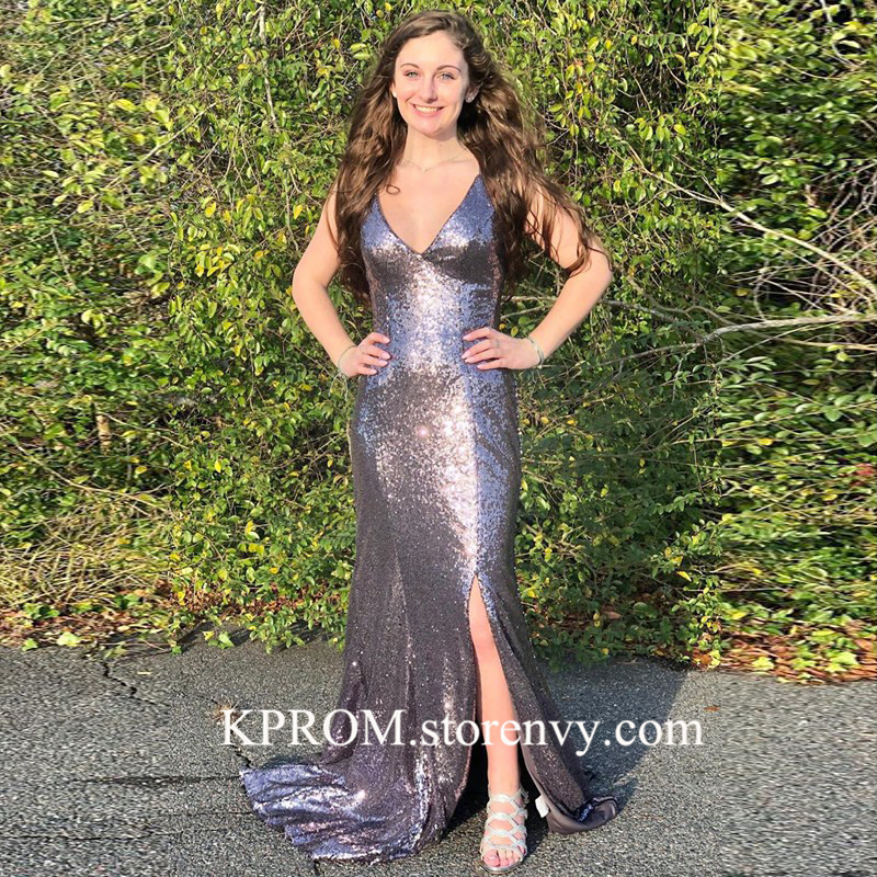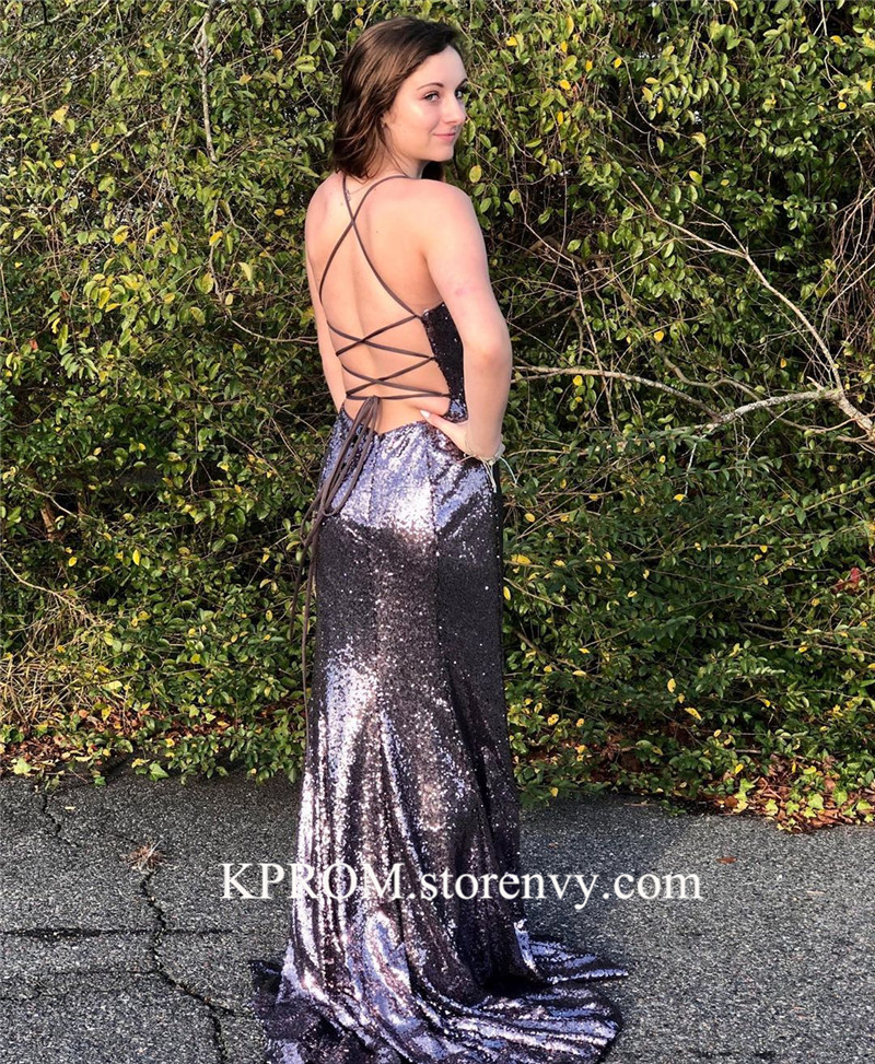 Sparkle Sequin Prom Dresses Long Open Backs Formal Evening Gown with slit