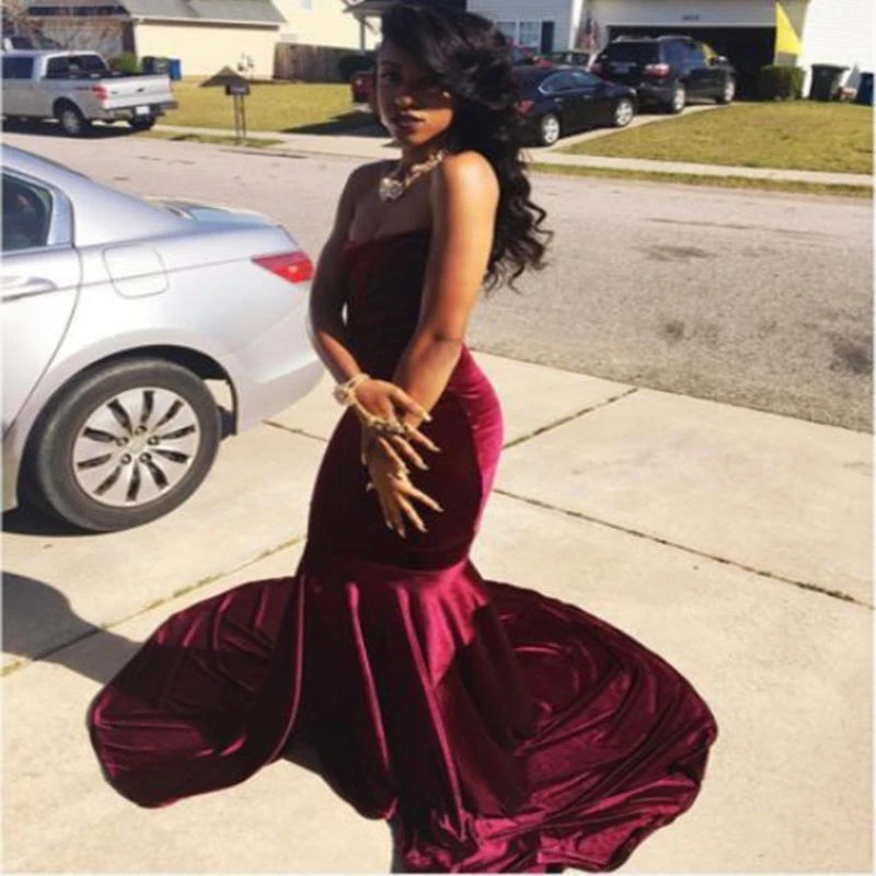 Long Burgundy Mermaid Sleeveless Zipper Velvet Prom Dresses,Elegant Gala Dress