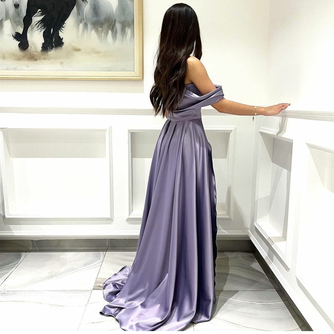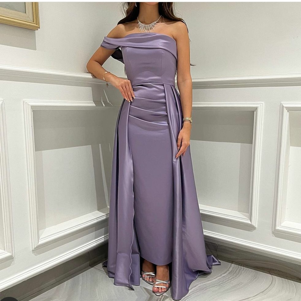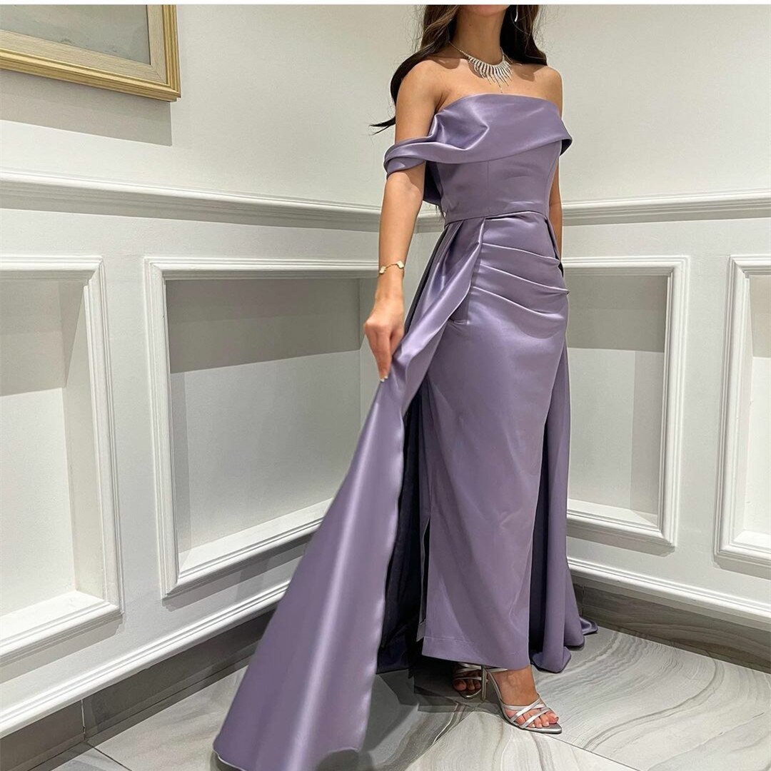 Elegant Long Satin Evening Dresses,Grey Mermaid Ankle Length Pleated Prom Dress for Women